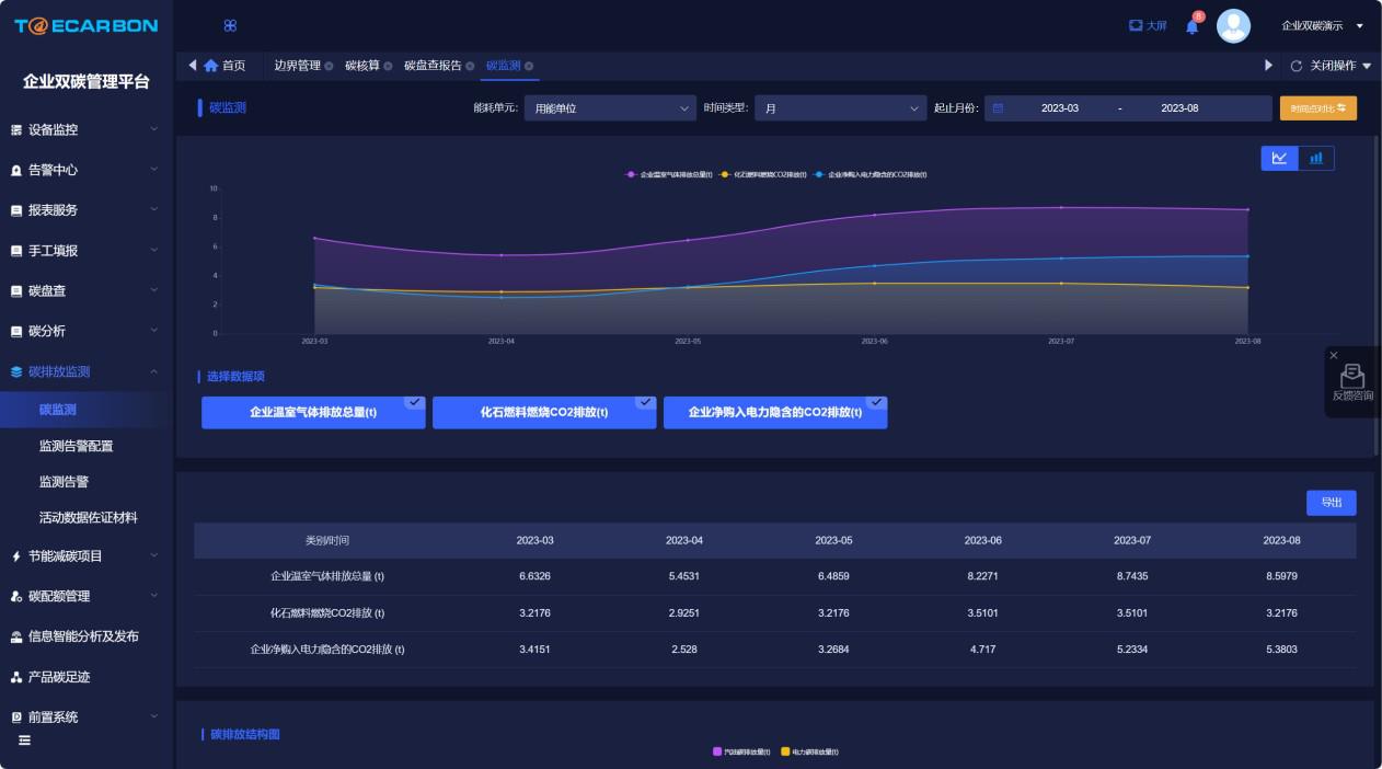 數(shù)字化能碳管理系統(tǒng)平臺(tái)是支撐工業(yè)企業(yè)和園區(qū)提升能耗雙控和碳排放雙控管理水平的信息系統(tǒng),是加強(qiáng)工業(yè)節(jié)能降碳管理,推進(jìn)數(shù)字技術(shù)賦能綠色低碳轉(zhuǎn)型的基礎(chǔ)工具。可支撐企業(yè)申報(bào)綠色工廠和零碳園區(qū),滿足《工業(yè)企業(yè)和園區(qū)數(shù)字化能碳管理中心建設(shè)指南》中十二項(xiàng)功能,即能耗查詢、能源消費(fèi)量和強(qiáng)度計(jì)算、能源消費(fèi)分析與用能策略推薦、能效對(duì)標(biāo)、能流分析、能效平衡與優(yōu)化、用能與碳排放預(yù)算管理、碳排放、碳足跡核算、供應(yīng)鏈碳管理、碳核查支撐、碳資產(chǎn)管理等功能。