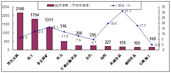 我國8個主要耗能工業(yè)行業(yè)的單位產(chǎn)品能耗平均比世界先進水平高47%以上,8個行業(yè)的能源消費占工業(yè)部門能源消費總量的73%。