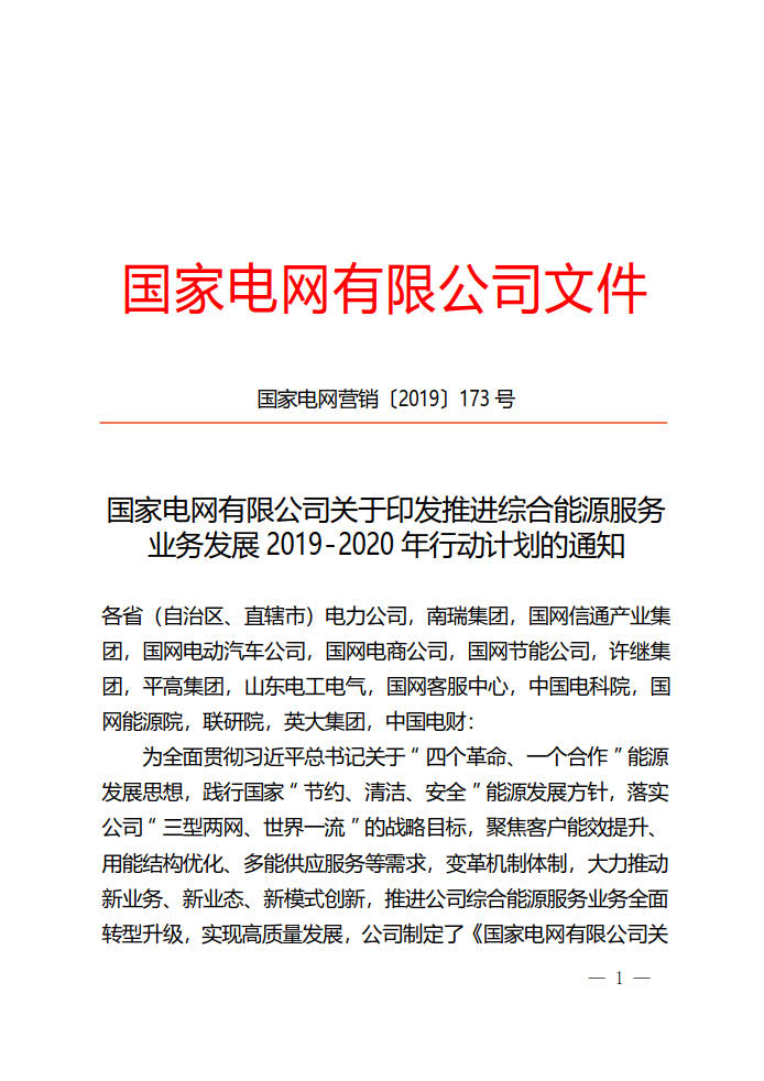 推進(jìn)綜合能源服務(wù)業(yè)務(wù)發(fā)展2019-2020年行動(dòng)計(jì)劃