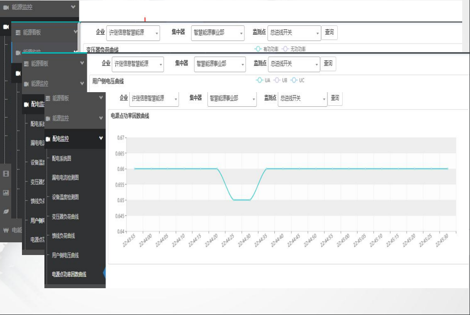 實(shí)時(shí)數(shù)據(jù)監(jiān)測(cè):(電流、電壓、功率、功率因數(shù)、開(kāi)關(guān)量)支持多曲線呈現(xiàn),秒級(jí)/分鐘級(jí)/信號(hào)