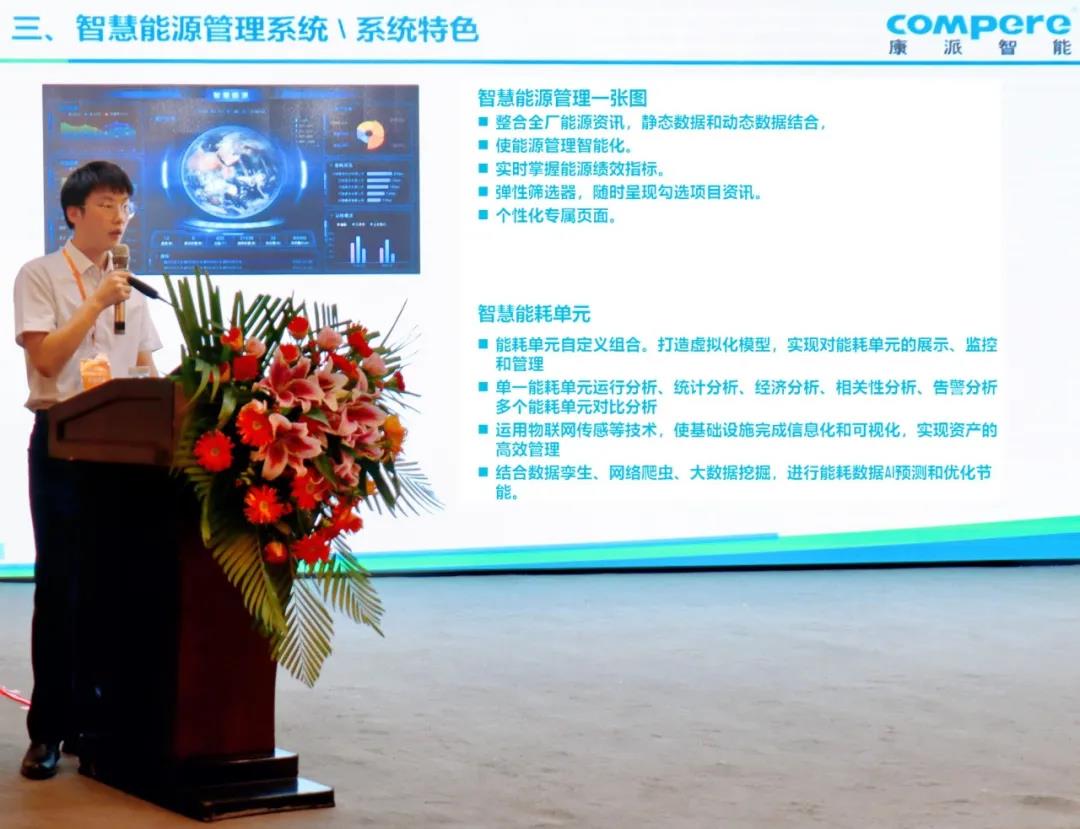 在企業(yè)演講環(huán)節(jié),康派智能產(chǎn)品經(jīng)理黃森先生代表公司做專題演講,針對智慧能源管理系統(tǒng)的建設(shè)與應(yīng)用問題進行講解,并以