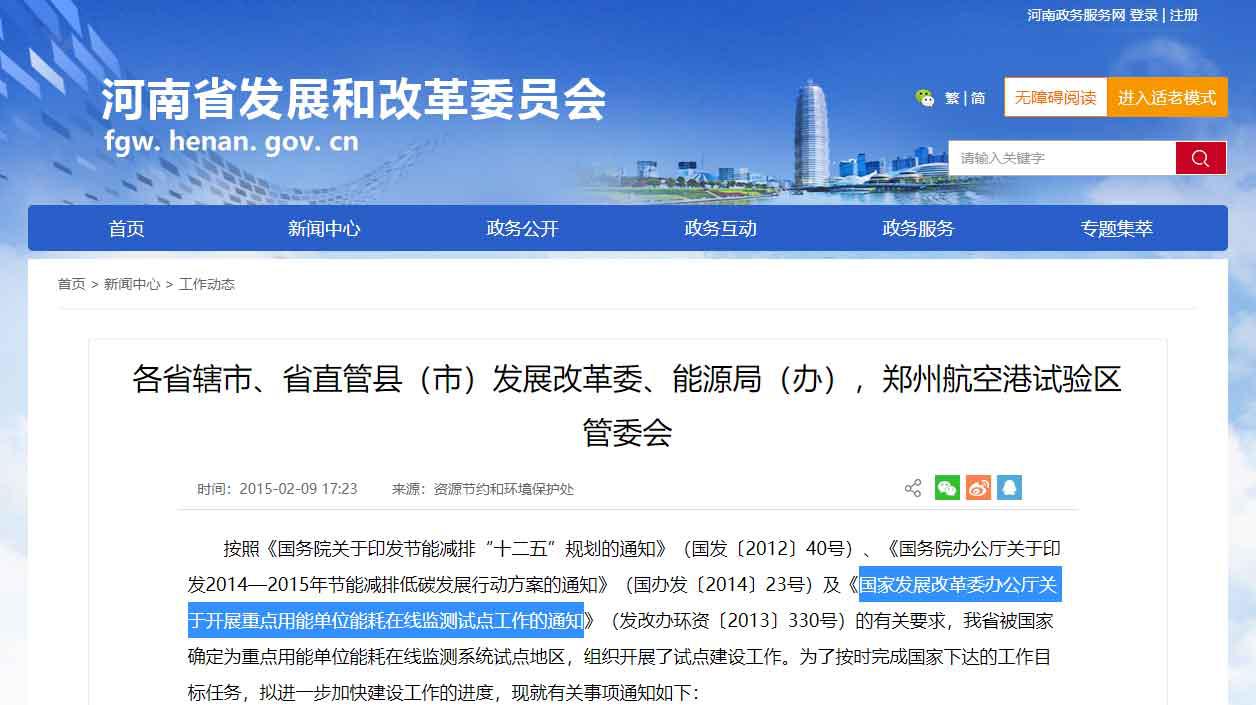 根據(jù)國(guó)家發(fā)展改革委、質(zhì)檢總局聯(lián)合印發(fā)的《重點(diǎn)用能單位能耗在線(xiàn)監(jiān)測(cè)系統(tǒng)推廣建設(shè)工作方案》及《國(guó)家發(fā)展改革委辦公廳關(guān)于開(kāi)展重點(diǎn)用能單位能耗在線(xiàn)監(jiān)測(cè)試點(diǎn)工作的通知》(發(fā)改辦環(huán)資〔2013〕330號(hào))的有關(guān)要求,加快河南省重點(diǎn)用能單位能耗在線(xiàn)監(jiān)測(cè)系統(tǒng)平臺(tái)建設(shè),推進(jìn)重點(diǎn)用能單位完善能源計(jì)量體系、提升能源管理精細(xì)化水平。