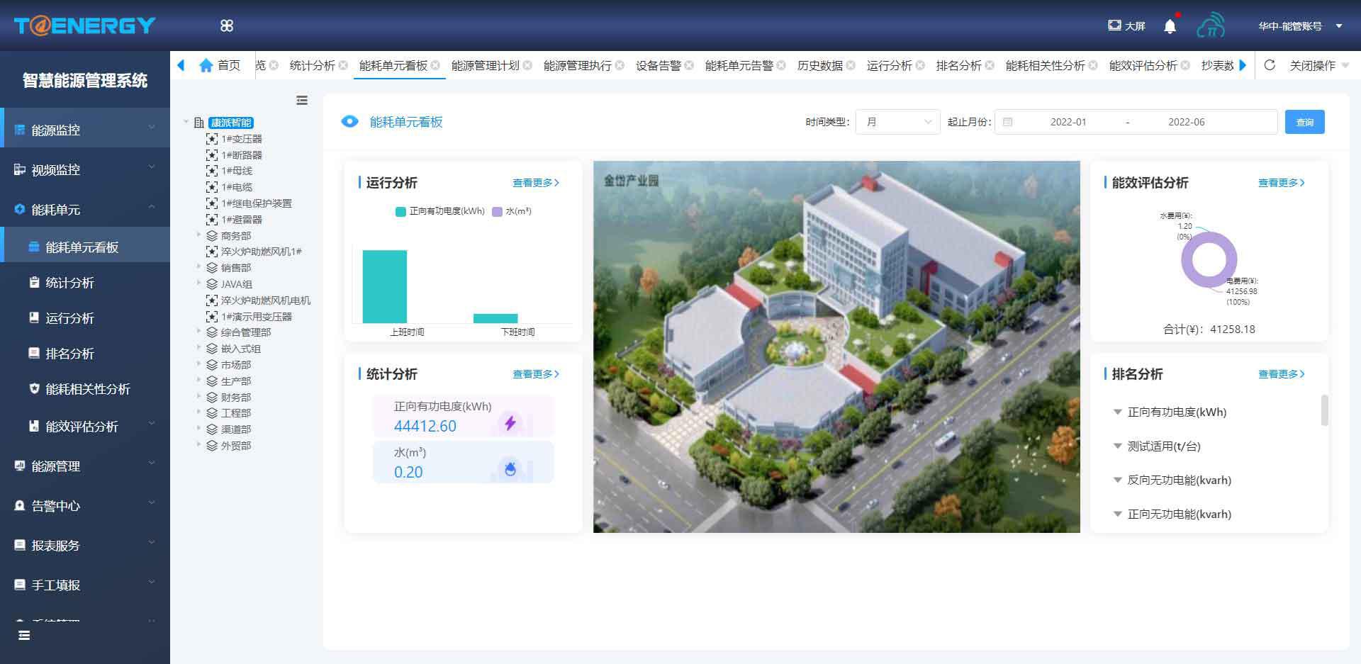 T@Energy智慧能源管理系統(tǒng)主要功能包括能源看板、能源監(jiān)控、視頻監(jiān)控、能耗統(tǒng)計、能耗分析、報表服務(wù)、生產(chǎn)管理、告警中心、設(shè)備管理等。下面主要介紹能源監(jiān)控、能耗統(tǒng)計、報表服務(wù)、告警中心四項功能: